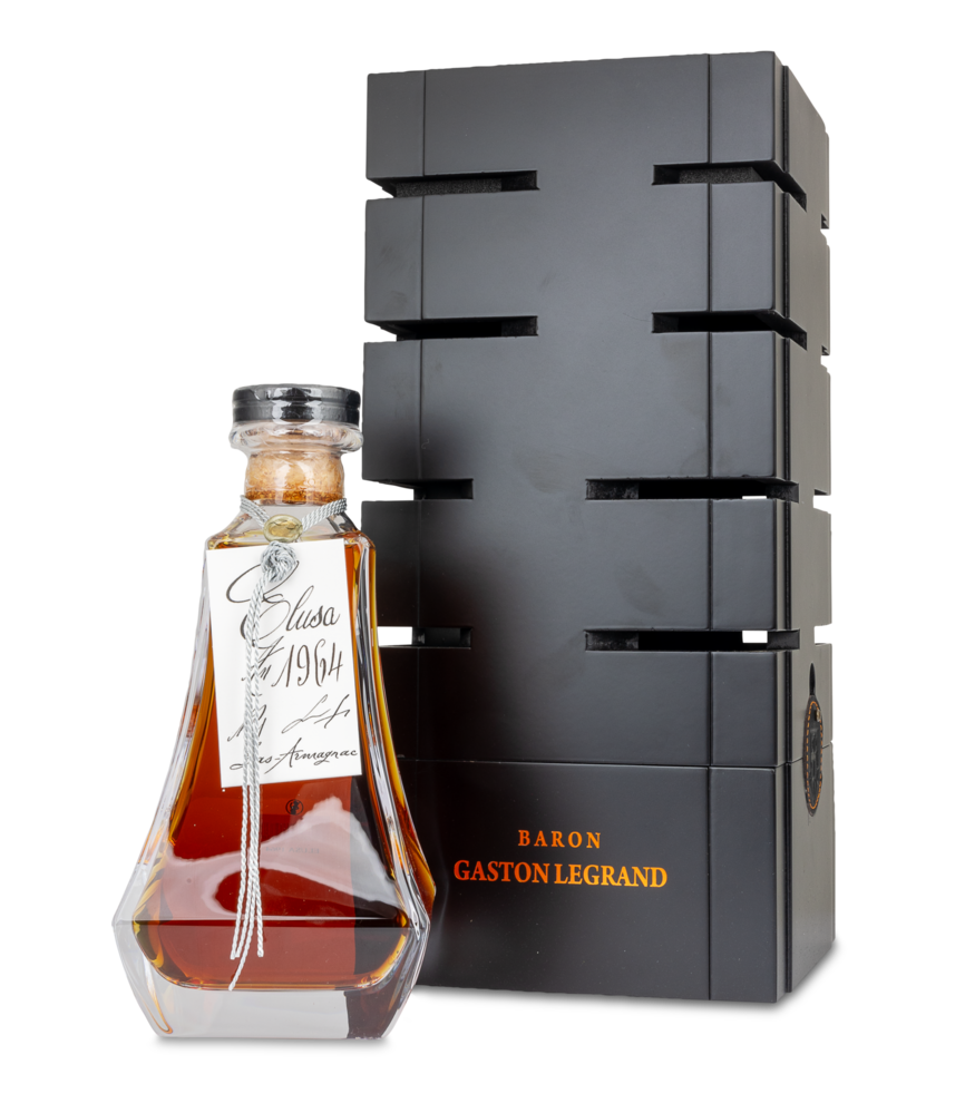 Bas Armagnac Caraffe Elusa 1964 ponúka hlboké tóny karamelu, orieška a dubu s dlhotrvajúcim záverom.