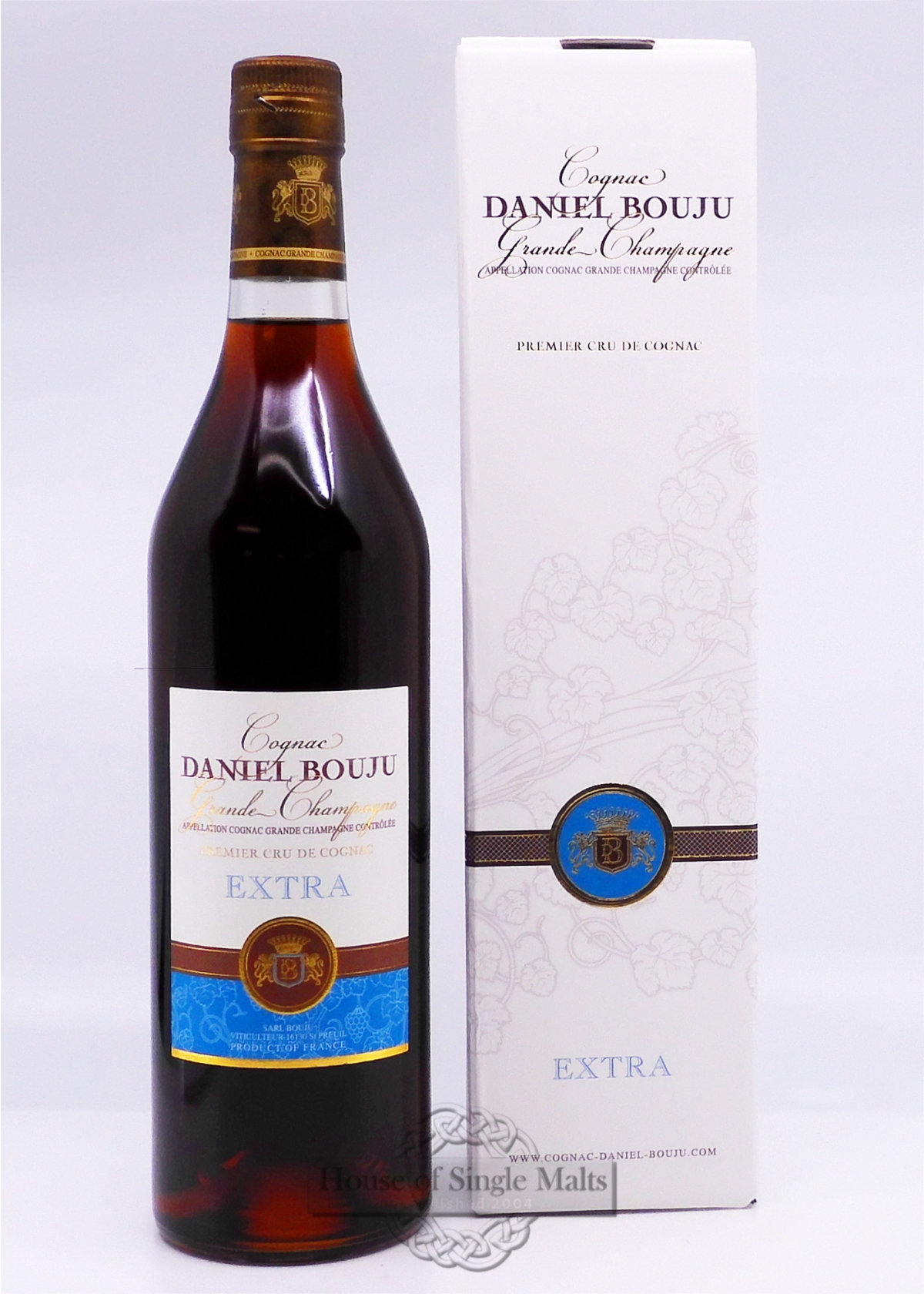 Koňak Daniel Bouju Extra je vyrábaný zo 100 % hroznovej odrody Ugni Blanc (doplnený o menšie podiely lokálnych hroznových odrôd), pochádzajúcej z oblasti Grande Champagne. Prvé roky dozrieva v hrubých alebo stredne hrubých nových dubových Limousine sudoch, neskôr je premiestnený do starých dubových sudov.